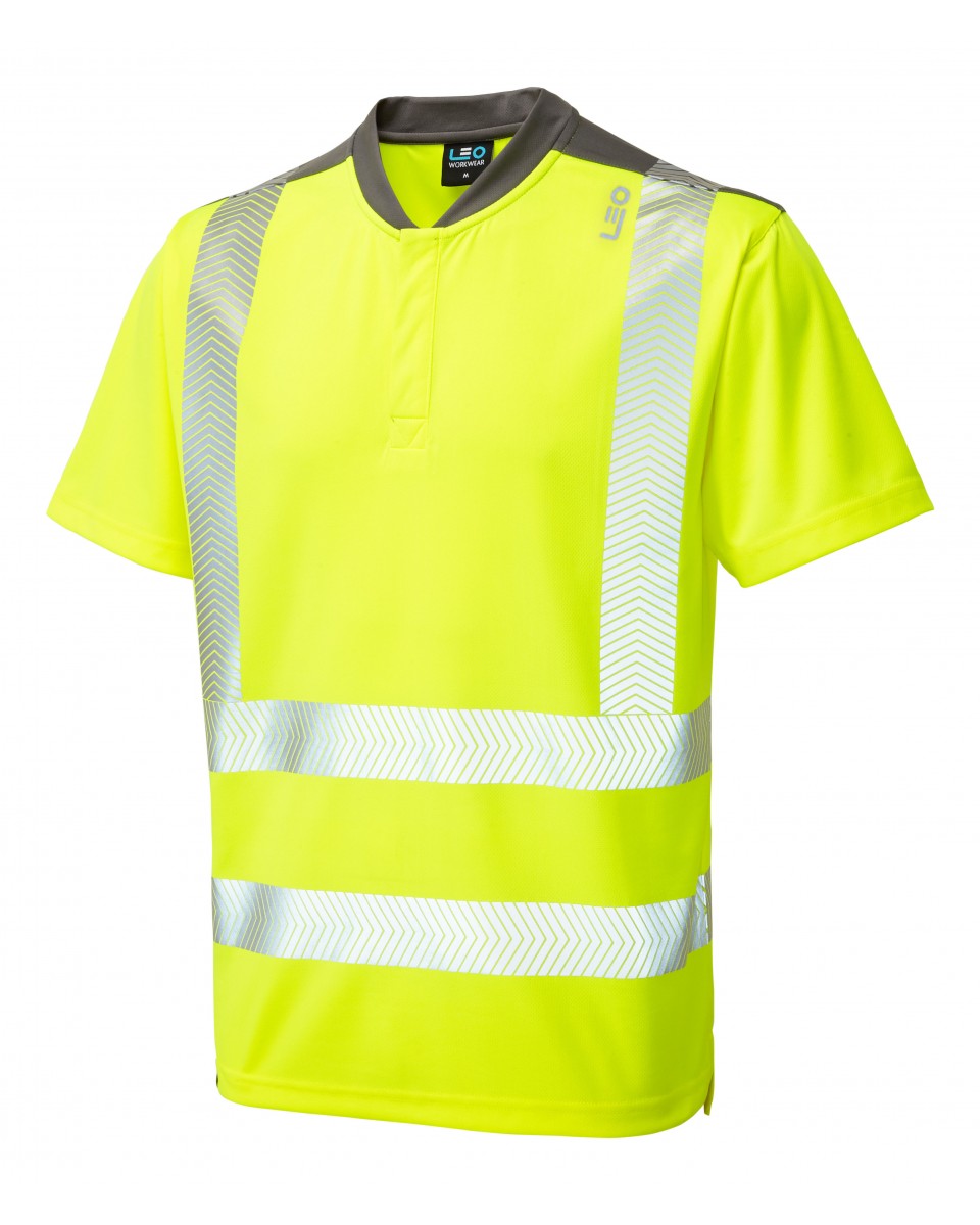 Railway Industry Standard RIS-3279-TOM, Inherently wicking coolmax fabric, absorbs moisture and channels it away from the body. Modern blade collar YKK™®plastic stud-fastened placket, UV protection to UPF 40+ meeting EN 13758-2. Inherently anti-microbial fabric for protection against the build-up of bacteria and odour. Segmented reflective tape for garment stretch and improved breathability, Split-hem design with extended back. 150GSM 55% COOLMAX™® polyester, 45% polyester Chevron Design Segmented Tape ISO 20471 Class 2