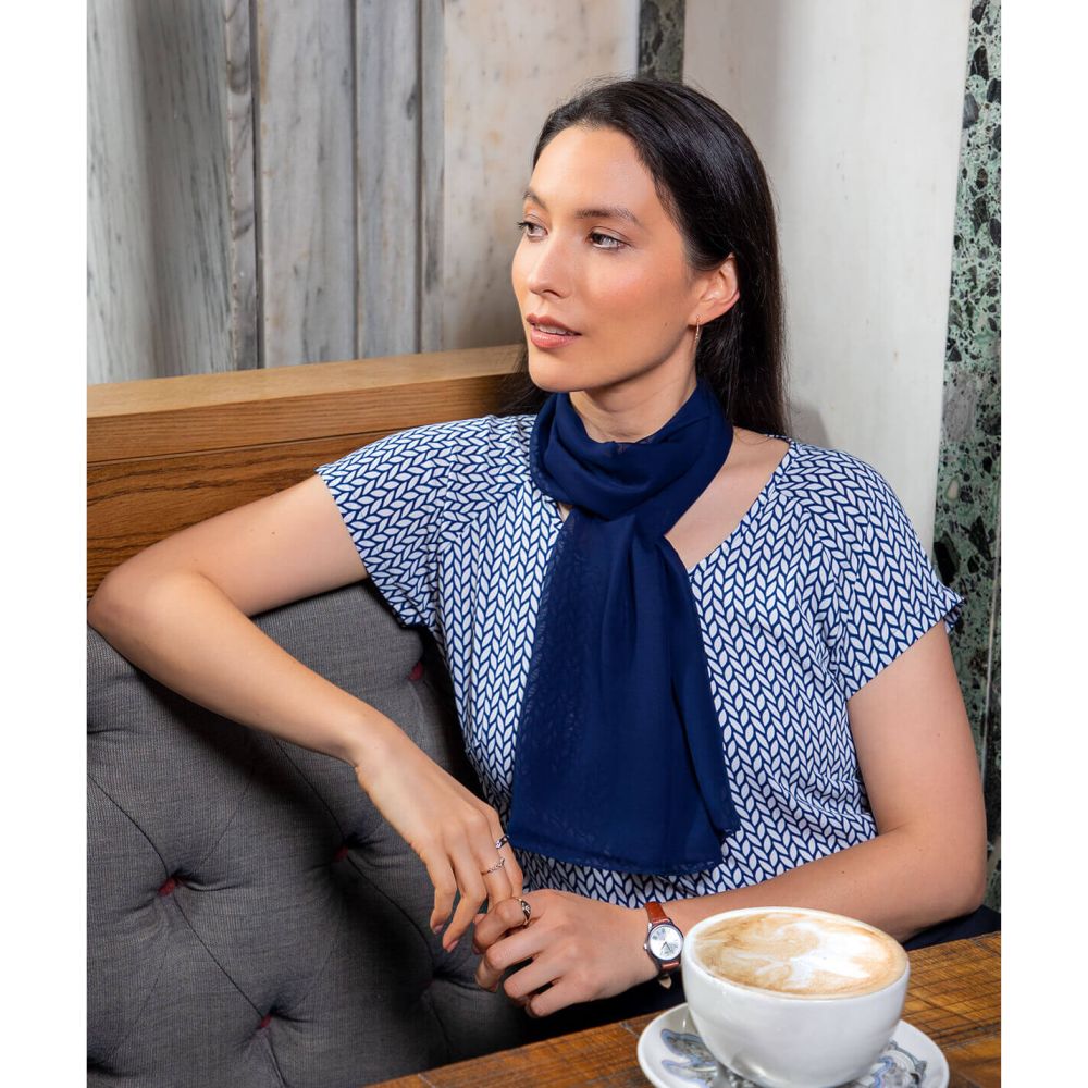 Ladies Catriona Long Sleeve Blouse Navy/White